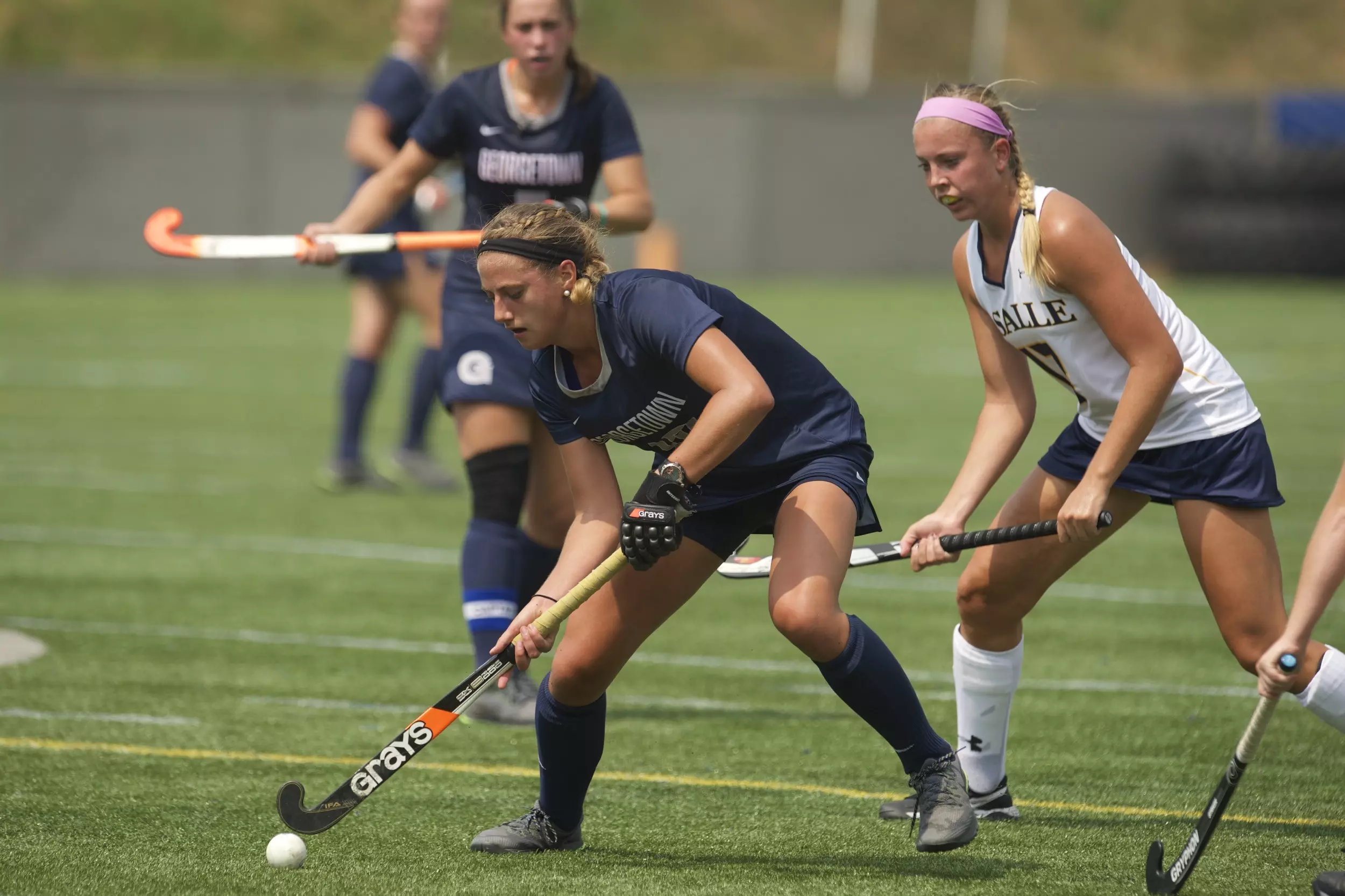 Despite being outshot, 15-1, and a 10-3 deficit in penalty corners in the opening half, Georgetown limited the Hawks to just one goal thanks to five saves from Skonecki and two defensive saves from Holmes.
