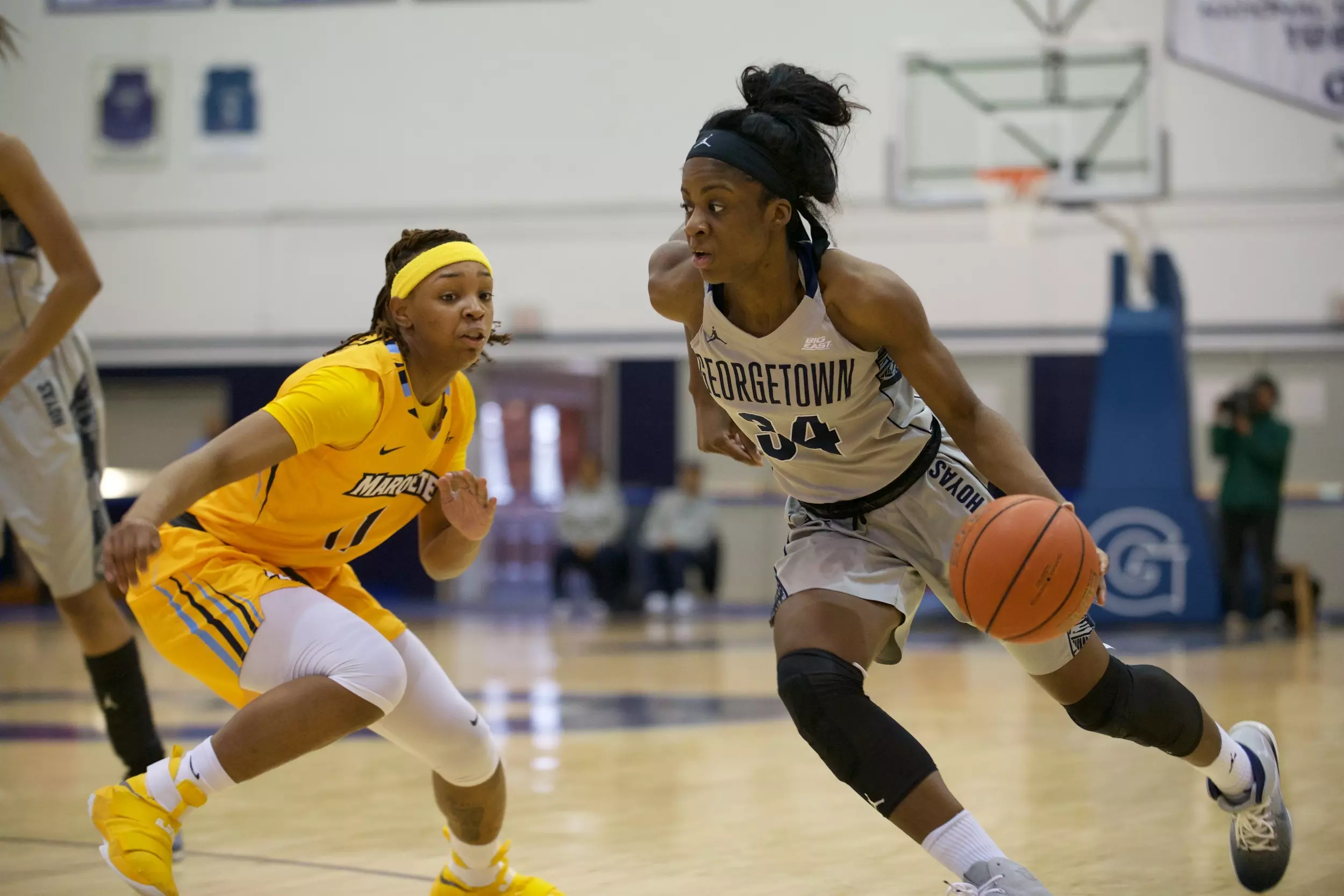 Woodard leads the Hoyas with 15.1 ppg and 9.0 rpg in her senior season. She also has a squad-best 20 blocks. White and Adomako are the other two Hoyas averaging in double figures with 14.8 and 14.7 ppg, respectively. White has a team-high 42 steals on the year which ranks first in the conference and 16th in the country. Her 3.5 spg also lead the league and rank 11th in the nation. Adomako is pulling in 7.2 rpg to rank second on the squad.