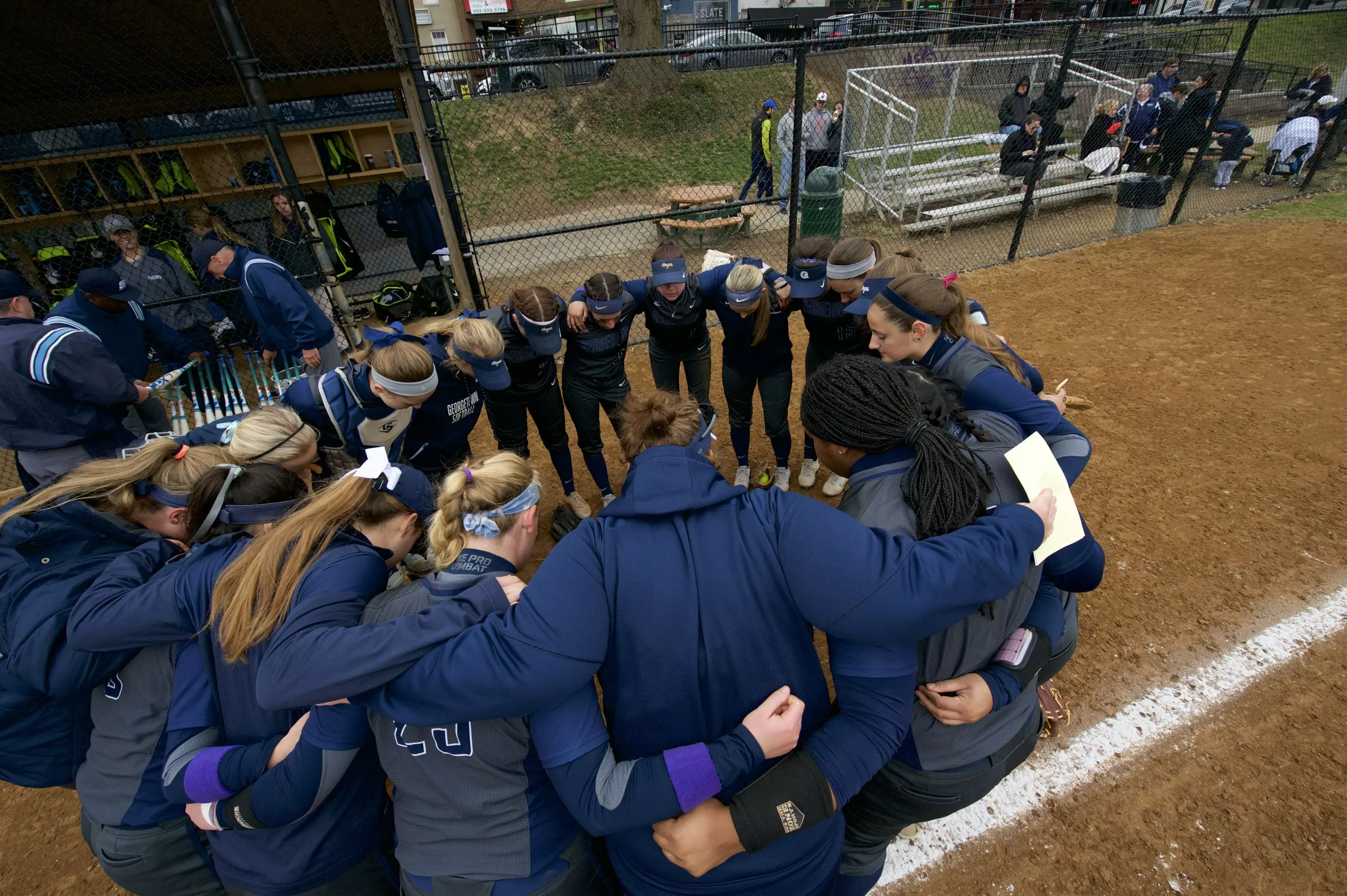Georgetown's first scoring opportunity came in the first inning. Theresa Kane (Mystic, Conn./Stonington) delivered a one-out single into left field and advanced to second on Gabriela Elvina's (Edison, N.J./Bishop George Ahr) single up the middle. Noelle Holiday (Bear, Del./Red Lion Christian Academy) loaded the bases with a single into left field. However, the inning was ended on a tough line drive double play.