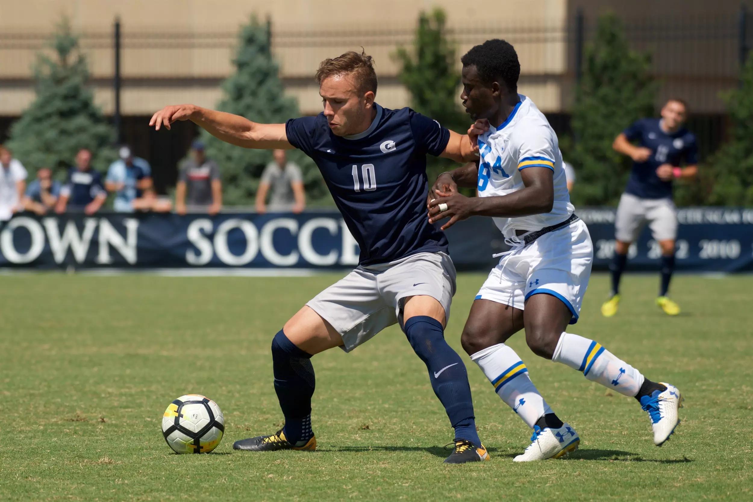 Sept. 8, 2017 WASHINGTON - The No. 18 Georgetown University men's soccer squad (4-0) will travel to Storrs, Conn., to face the University of Connecticut Huskies (1-2) on Saturday evening at Joseph J. Morrone Stadium for a 7 p.m. kickoff. Georgetown is coming off of a 2-0 weekend, but this will be the Hoyas' first road test since the first game of the season.